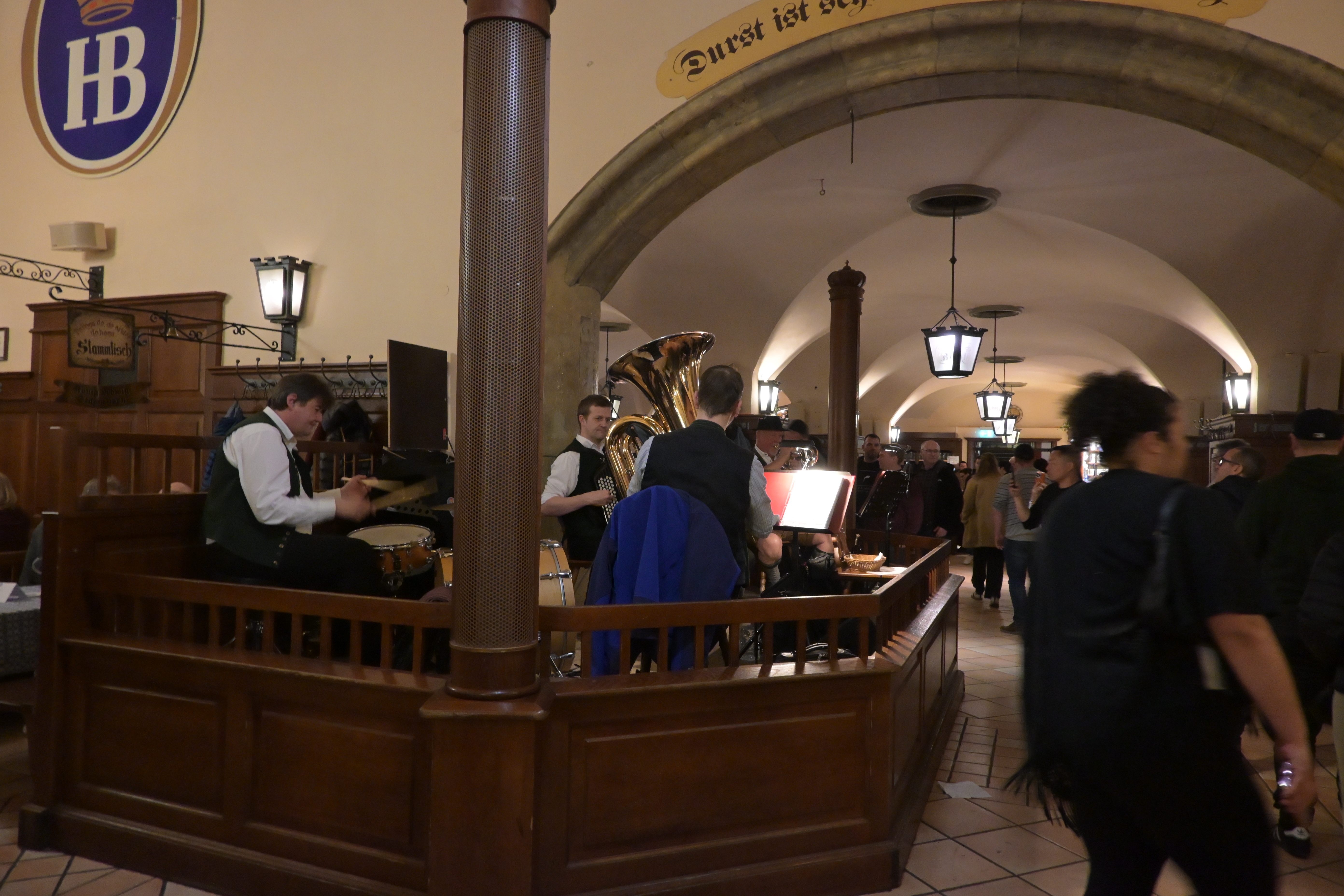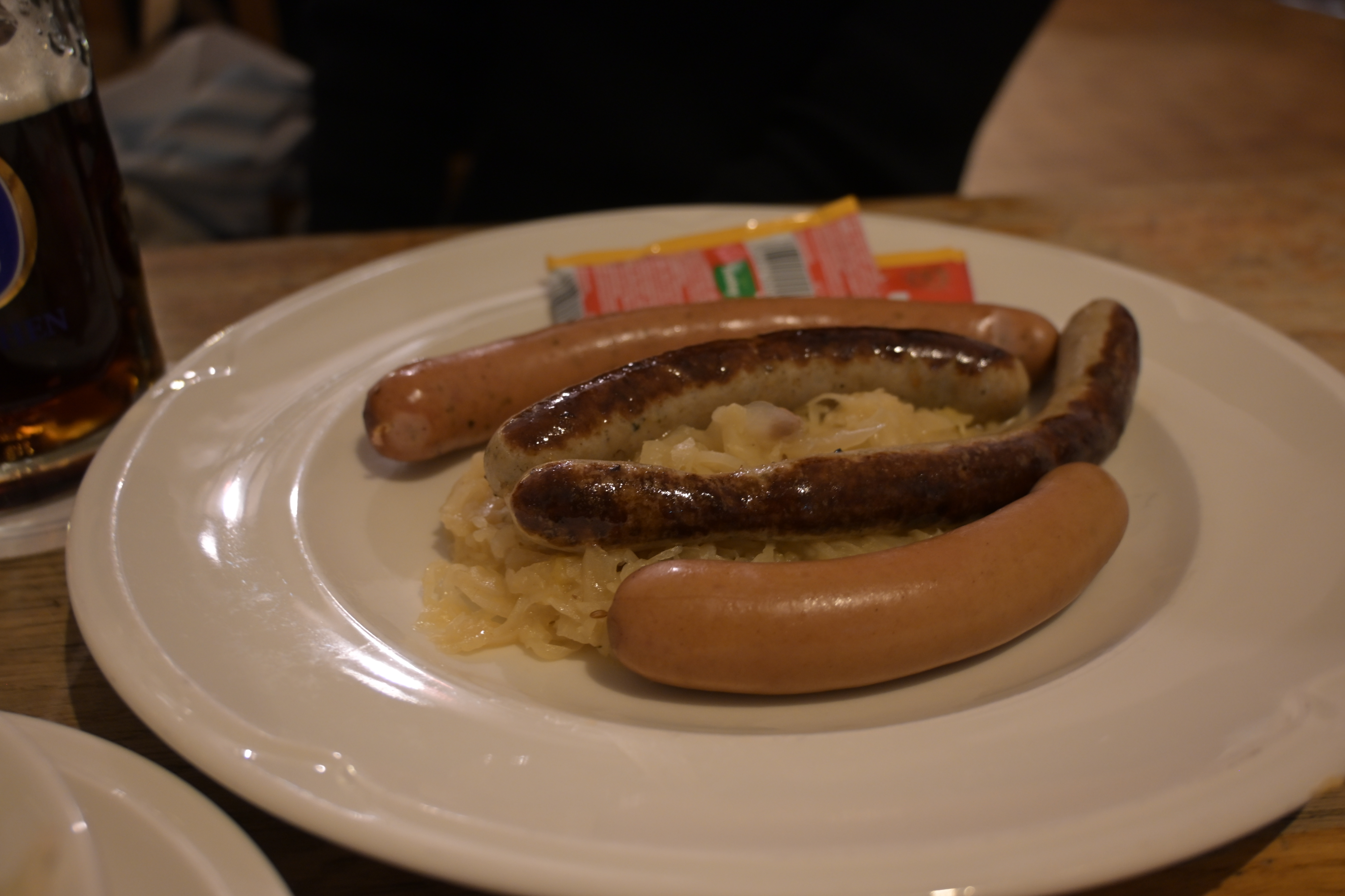 ホフブロイハウスは16世紀から続くビアホールで日本でも知ってる人が多いかもしれない.中に入ると熱気がすごい.めっちゃ人が座ってる.レストランと異なり案内はなく好きなところに座るとエリアを担当している人がついてくれるようなシステムだった.正面奥ではずっと生演奏していてすごかった.