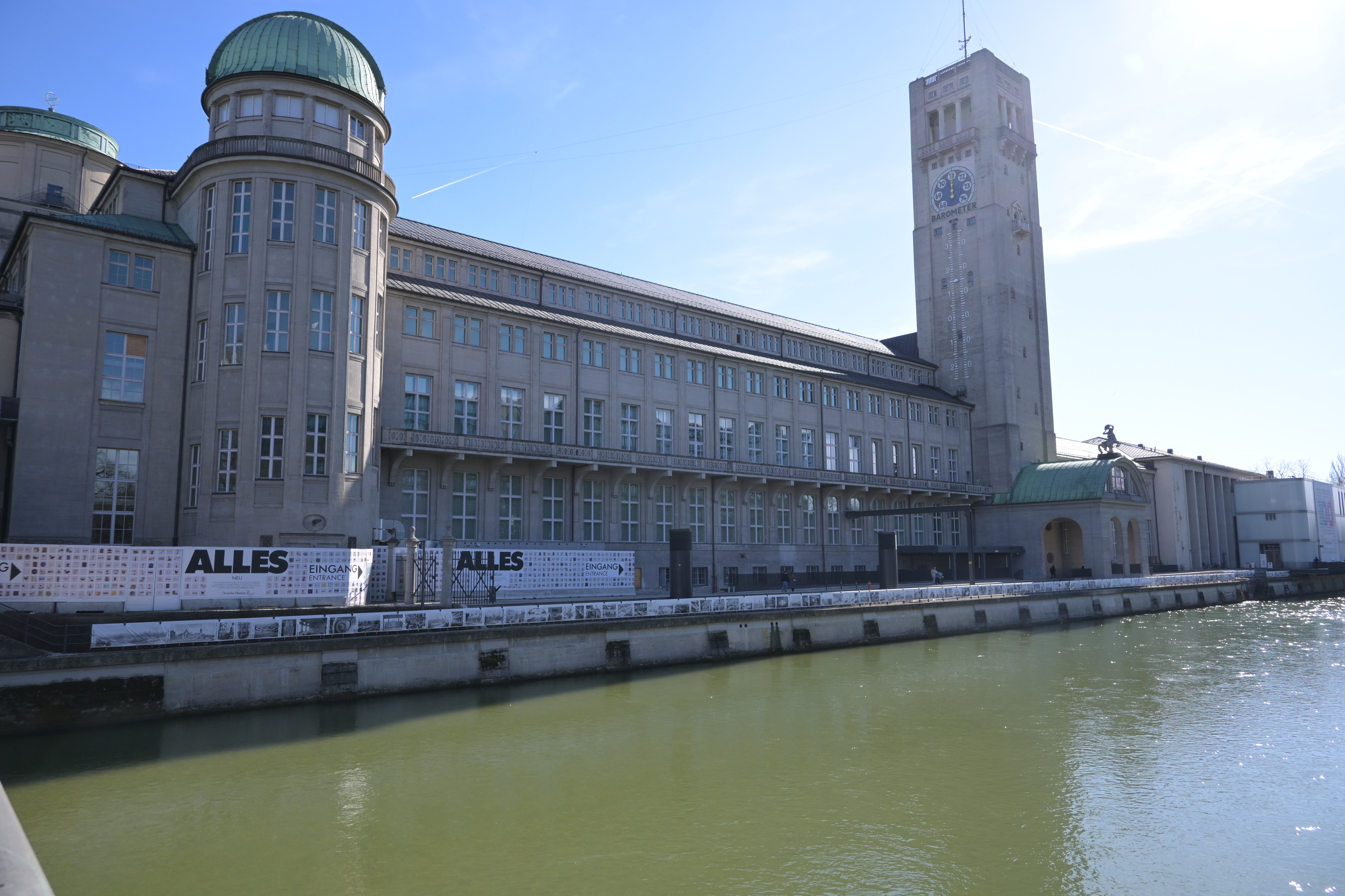 駅を出て少し歩くとドイツ博物館が見えてきた.左側がすべてドイツ博物館らしい.中州いっぱいに作られた世界最大級の博物館?と聞いていたがおおきくてびっくり.