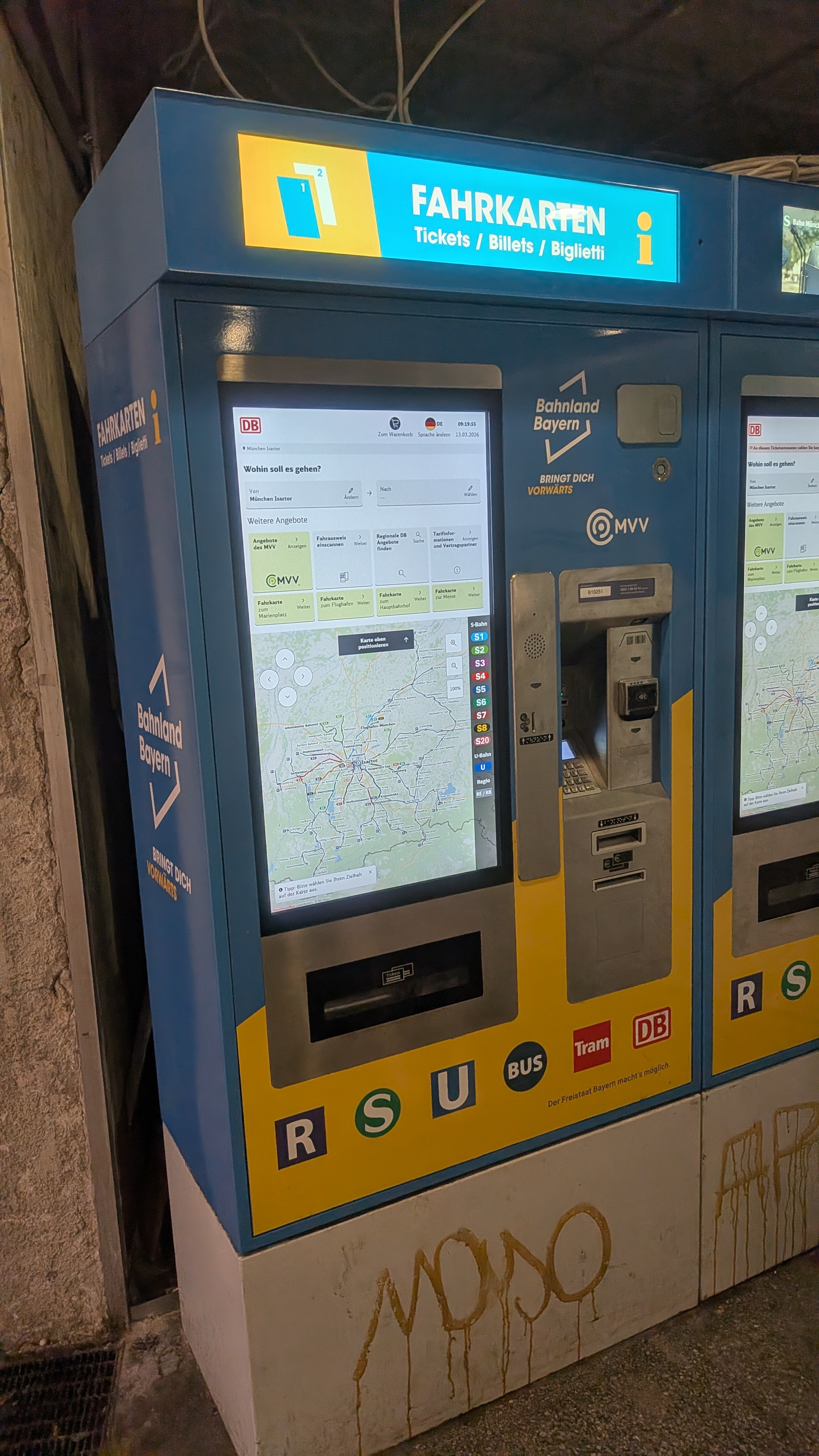 ドイツで初めて地下鉄に乗った.乗り放題券が得なのでそちらを購入.ドイツやオーストリアには改札がない.噂ではたまに覆面の確認員の人が現れて切符を確認するらしく,そのときにないとすごい罰金になるらしい.切符はネットで買える他,券売機でも買える.ネットが便利なので買ってから移動した.