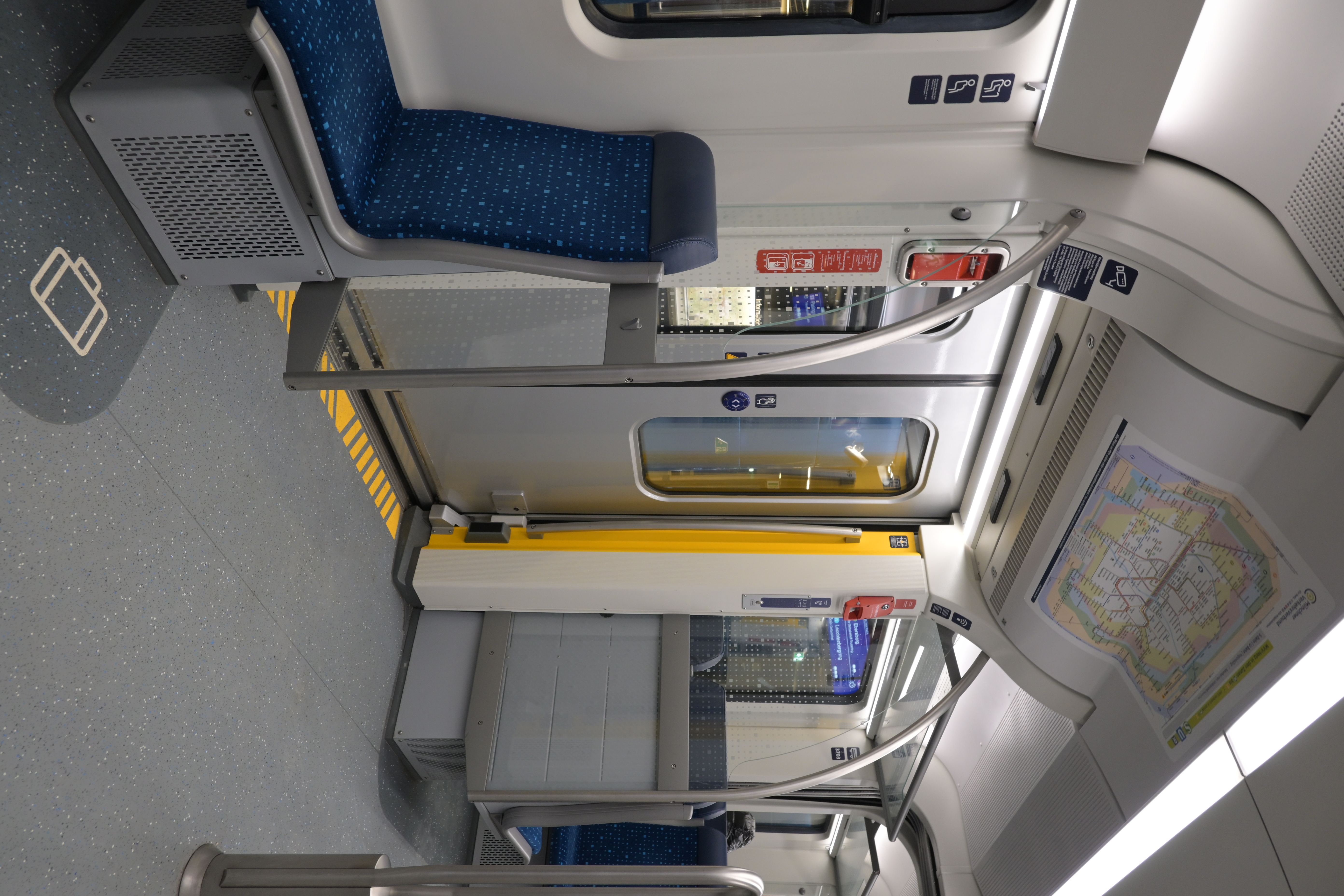 車内は日本と違っていろんな席があった.あと扉はボタンを押して開けるタイプ.都会なのに押さないと開かないのは驚きだった.