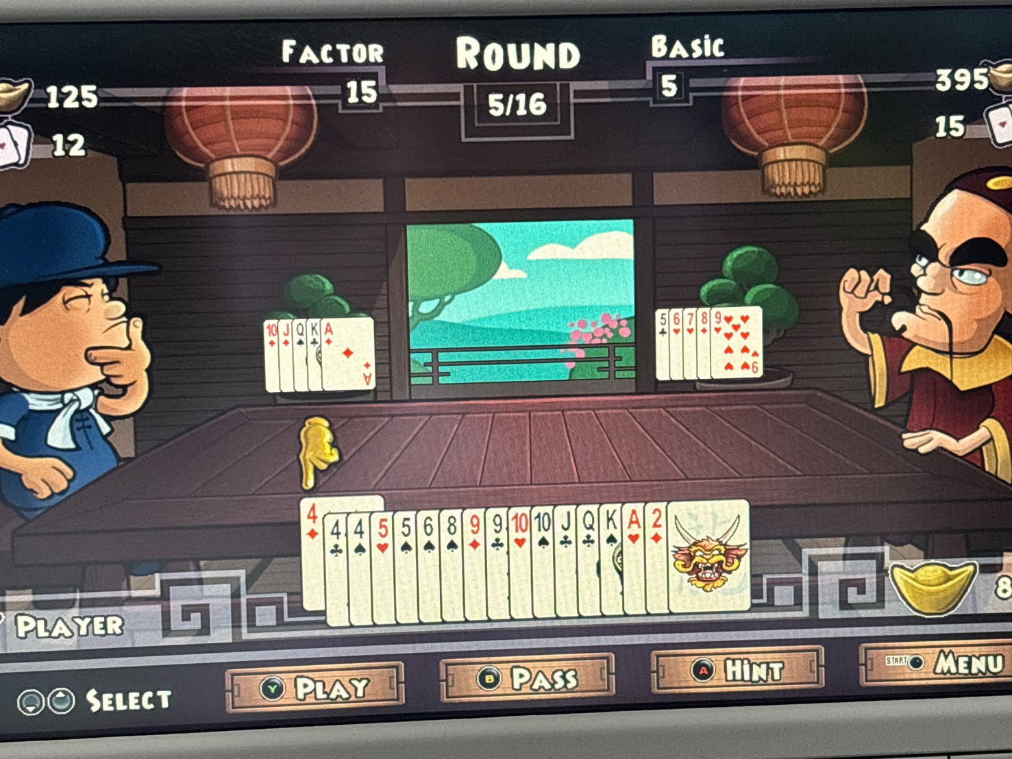 あと座席前方のモニターでは知らないルールの大富豪がありました.ずっとやっていましたが最後までルールが分からなかったです笑