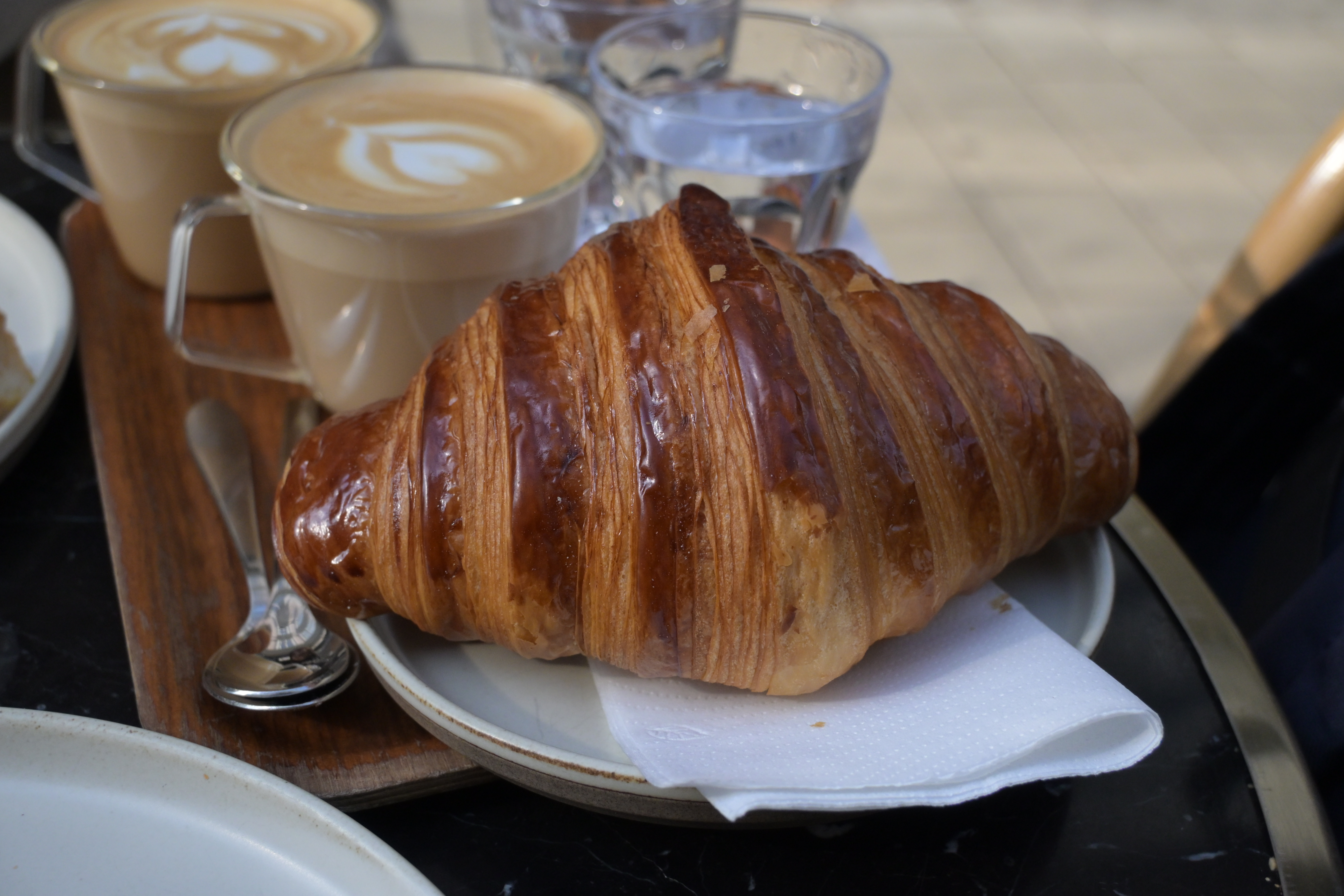 クロワッサンとバケットサンド2つを購入.カフェラテはラテアートをしてくれました!すごい!!