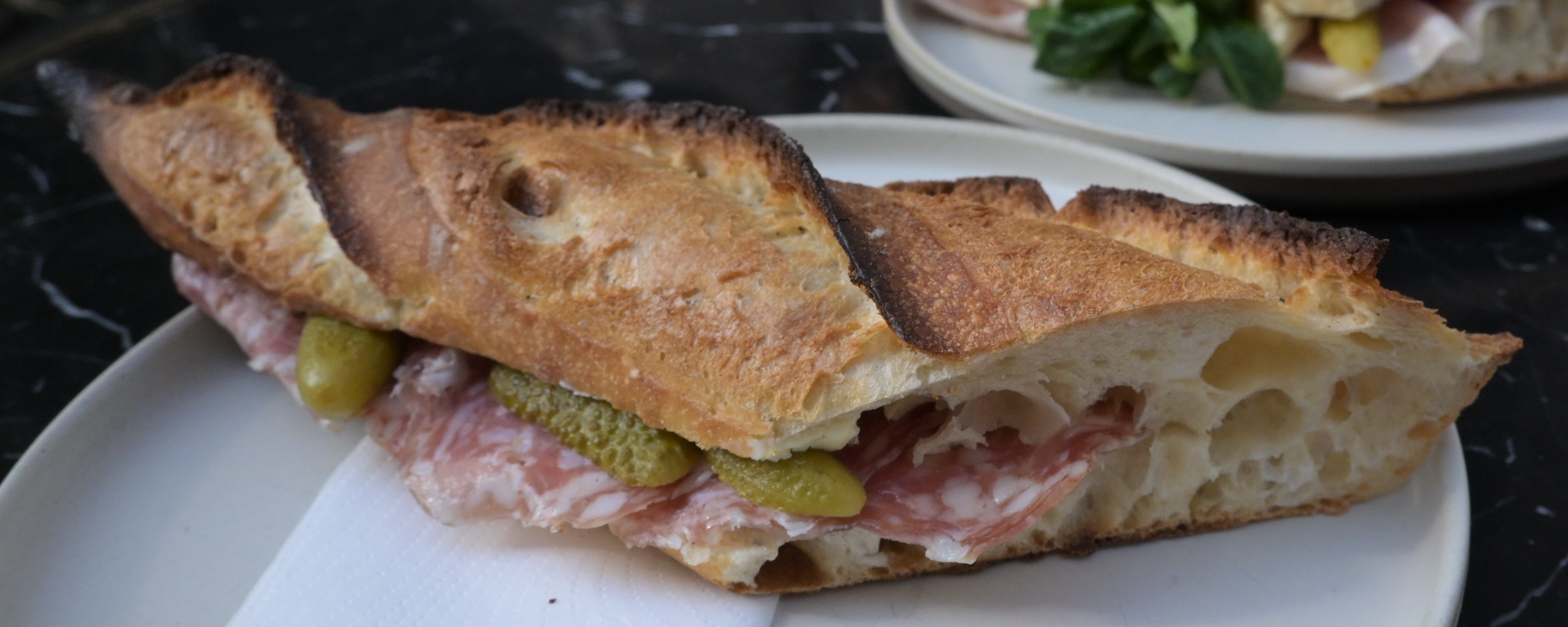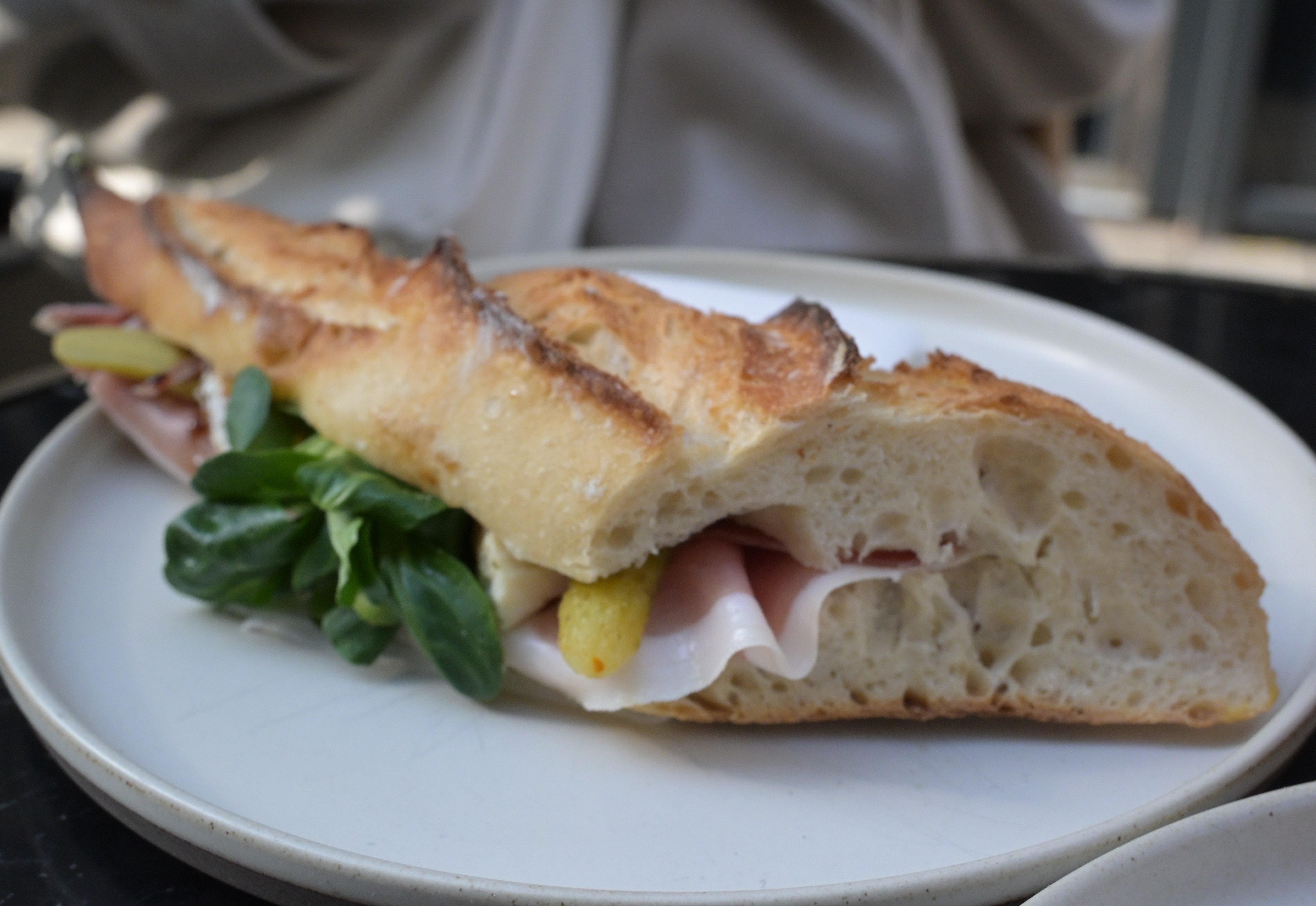 クロワッサンは拳骨よりおおきかったですがサクサクふわふわで全然重くなかったです.バケットサンドはハムとピクルスを挟んだものでした.シンプルですがめちゃくちゃ美味しかった.外は硬くパンはモチモチで本当にいいバケットサンドでした.