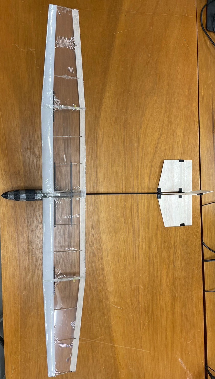 諸元はこんな感じです.飛行ロボットの経験しかないので200g位を目安に作っていました.重心が取れず鼻先に40 g重りを積んだので必要以上に重くなってしまったのですが翼面荷重が多少大きくなる分にはグライダーの性能は向上するので良しとしました.