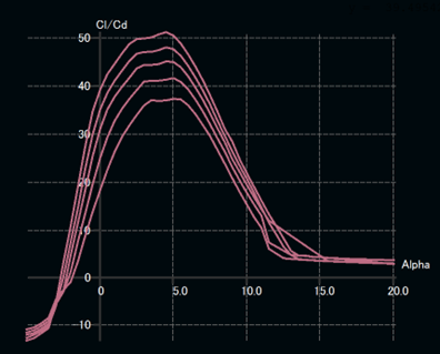 これは全体にテーパーや上反をかけると翼根の設計が大変になりそうだったところが大きいです.実際の設計点の決定には誘導抗力をある程度小さくするように設計しました.グラフを見ていただくとわかるようにある程度細長い主翼にするとそれ以上は抗力係数の差はほとんどなく,今度は主翼剛性に課題が発生するのである程度で我慢しました.今回のスケールではここを詰めるより製作を丁寧にしたほうが抵抗が減ります.
